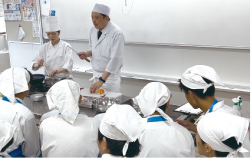 「調理・保育クラス」は、食と保育のスペシャリストを目指すクラスです。校内での豊富な実習に加え、博多学園幼稚園グループでの保育実習や調理専門学校でのテーブルマナー講座など、体験型学習が目白押し。もちろん、食物調理技術検定や保育技術検定などの専門的な検定試験対策も万全です。