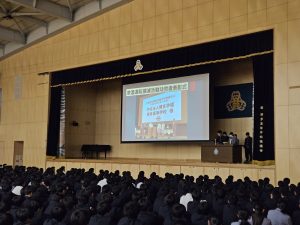 その後、分掌の先生方からお話がありました。教務部からは、短い三学期だからこそ出欠や成績が特に重要となり、年間成績を左右する時期であることが伝えられました。生徒指導部からは、SNSの使い方について、真偽が不確かな情報が拡散され、意図しない解釈をされる危険性がある点について注意喚起がありました。進路指導部からは、進路実現に向けて、各学年それぞれがラストスパートの時期であることが強調されました。