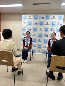 10月29日(水)に本校1年生の刀根遥緋(ゆりの樹バトンスタジオ)が夏のIBTF世界テクニカルバトントワリング大会で1位だったため、表敬訪問しました。