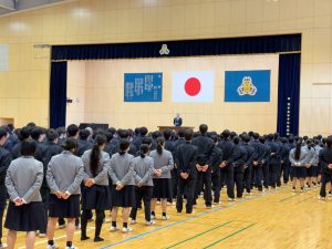 また、スポーツクライミングで日本代表として出場した生徒の表彰が行われ、その後バトントワリング部と空手道部の大会結果報告がありました。
